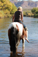 Howdy, Howdy Fans!!!!! Yes, it's me Blue Boy. Once you've met me you'll always remember me. I am very flashy, curious and just a loveable guy. I am one of the 'Boys', mom calls us that because we still act like little boys. Always curious, fun loving, creative little boys. I wasn't born here at the ranch, but nevertheless I am a grandson of Alabaz. My mother was a Palomino Pinto Foxtrotter mare, that's where I got my spots from. I was born in 2003. Mom came and took me out on trail as a two year old for the first time, just taking me along as a pony horse once or twice. And then she picked me up as a 3 year old, took me on trail and here I am . Years later I am one of the top trail horses, I think. I have such great gaits that you don't even feel the transitions between the walk, trot, canter and foxtrot.